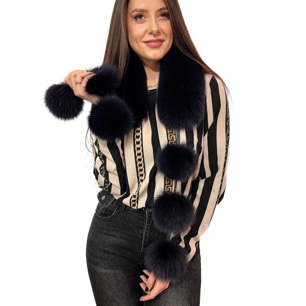 Fox Fur Scarf 24” (60cm) + 6 Pompoms Saga Furs Collar Jet Black Color